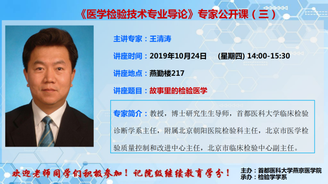 王清涛教授《医学检验技术专业导论》专家公开课(三)的通知