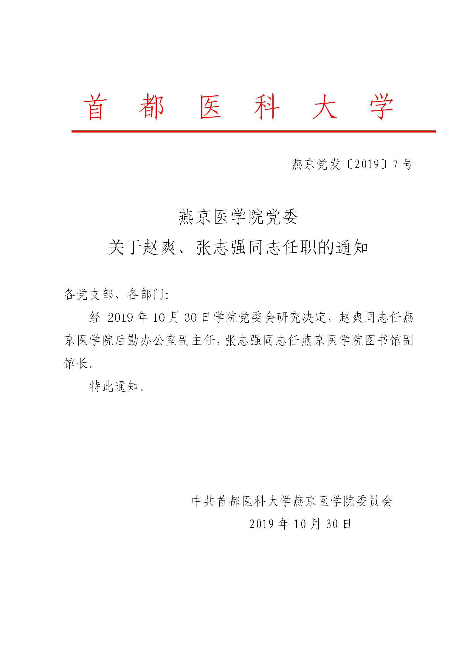 同人小说 党委关于赵爽、张志强同志任职的通知