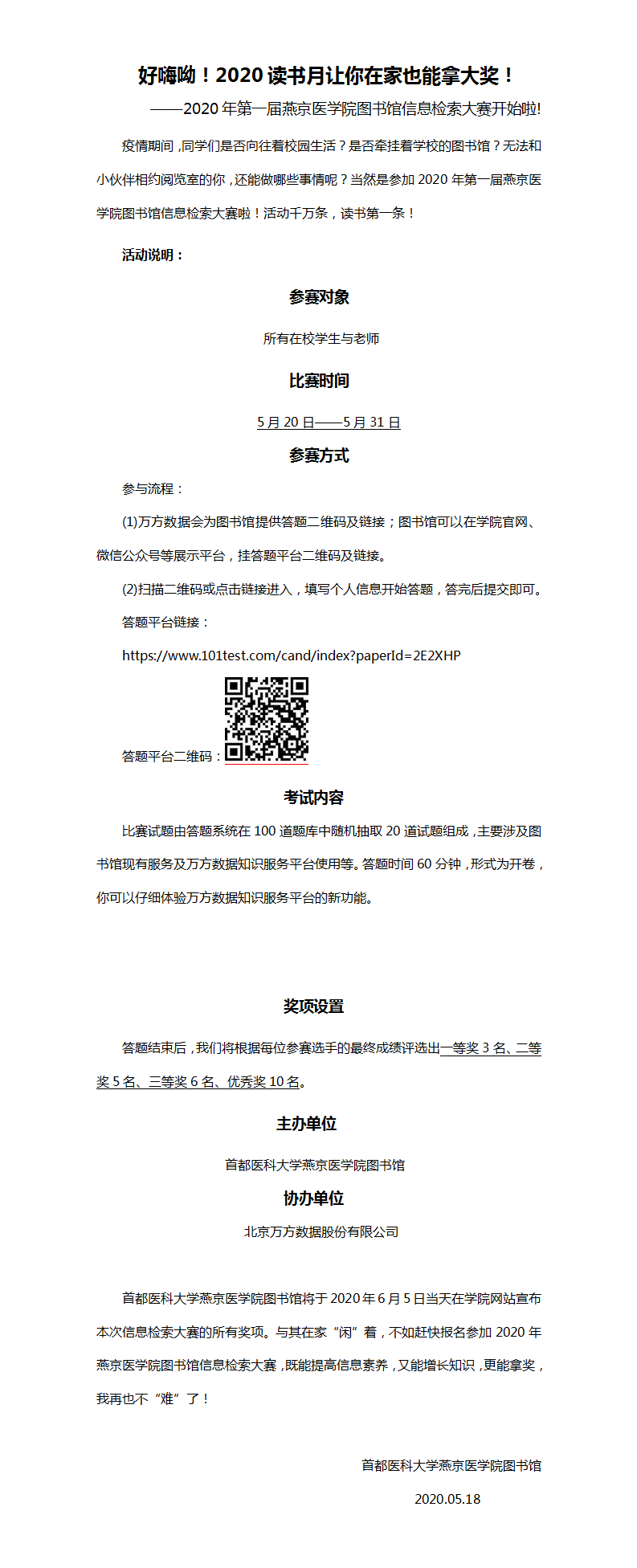 关于2020年第一届同人小说 图书馆信息检索大赛的通知