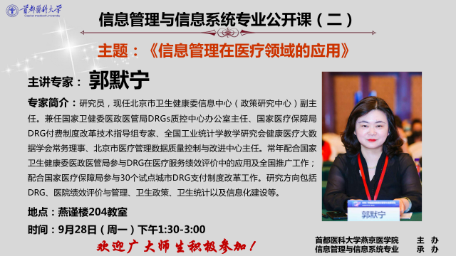 郭默宁研究员信息管理与信息系统专业公开课(二)的通知