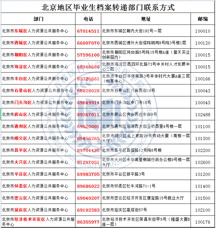 (三)毕业生档案转递部门联系方式